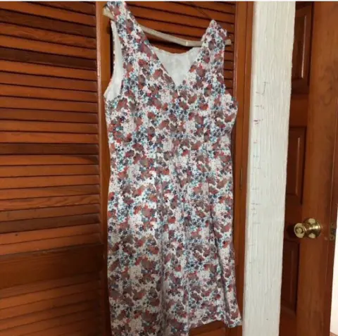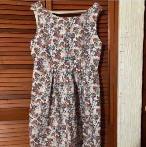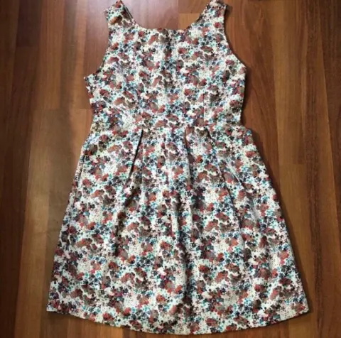 Vestido floral casual. Bonito vestido floral casual, talla mediana, corto, sin mangas, con forro por dentro