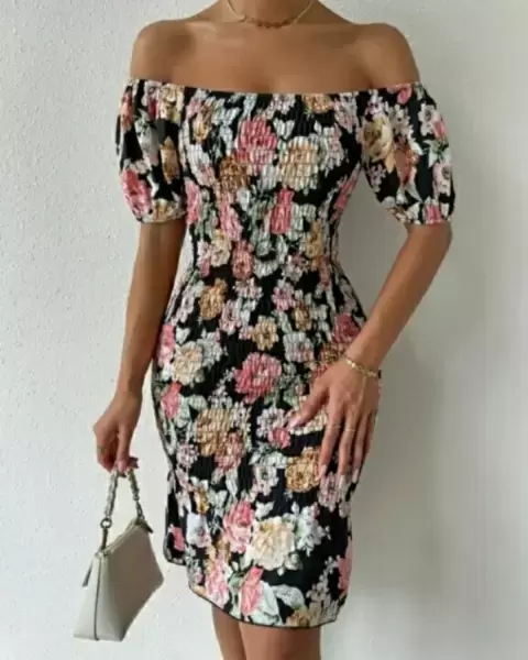 Vestido floral con manga farol. Lindo vestido floral con manga farol en talla M, nuevo, la tela estira muy bien y se amolda al cuerpo