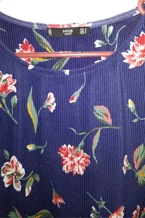 Vestido floral mango. Vestido plater dress mango con fondo azul y estampado floral, midiEnvío a la brevedadAcepto ofertas