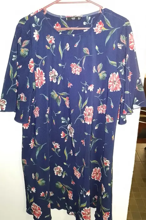 Vestido plater dress mango con fondo azul y estampado floral, midiEnvío a la brevedadAcepto ofertas
