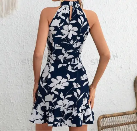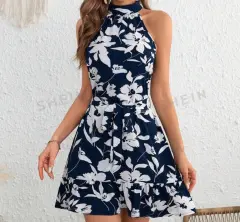 Vestido floral Shein. Vestido floral, muy fresco, azul marino, talla XS