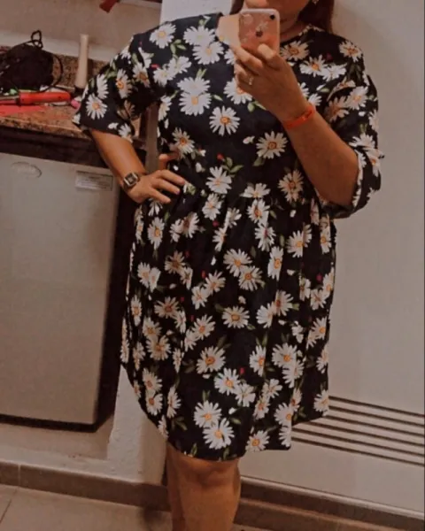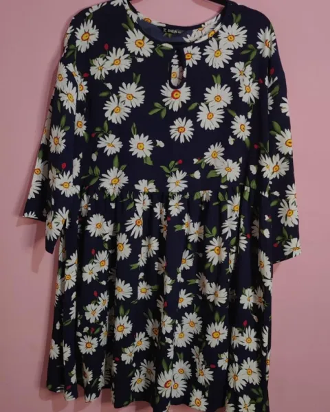 Vestido floreado en color azul marino es súper fresco la verdad solo lo une una vez.