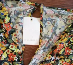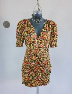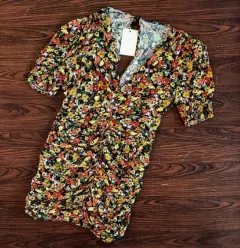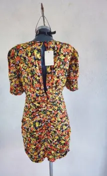 Vestido drapeado de abajo con flores y cierre trasero. Manga no tan corta. Es totalmente nuevo y se ve supernlindo puesto! 😍