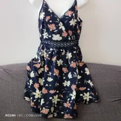 Vestido floreado azul. Vestido azul marino floreado de tirantes con cintilla de encaje, nuevo sin etiqueta, la tela es muy fresca