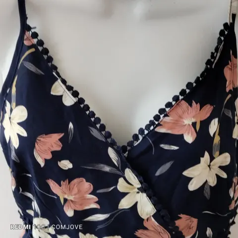 Vestido azul marino floreado de tirantes con cintilla de encaje, nuevo sin etiqueta, la tela es muy fresca