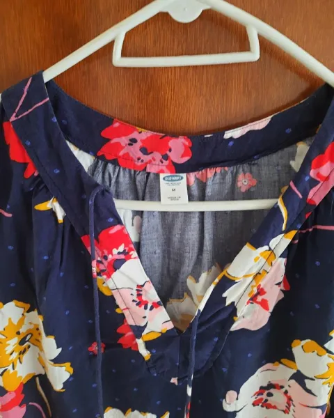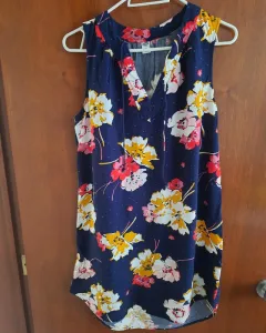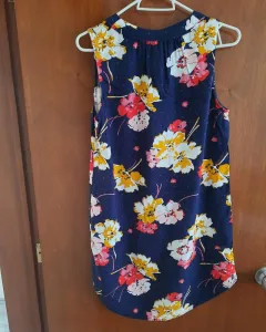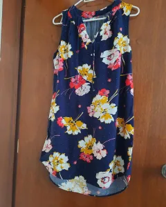 Vestido floreado con cuello v. Vestido con cuello "v" , sin mangas. Con flores es talla m pero da grande.. largo de la parte de atrás 86 cm y 64 cm de enfrente