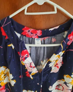 Vestido con cuello "v" , sin mangas. Con flores es talla m pero da grande.. largo de la parte de atrás 86 cm y 64 cm de enfrente