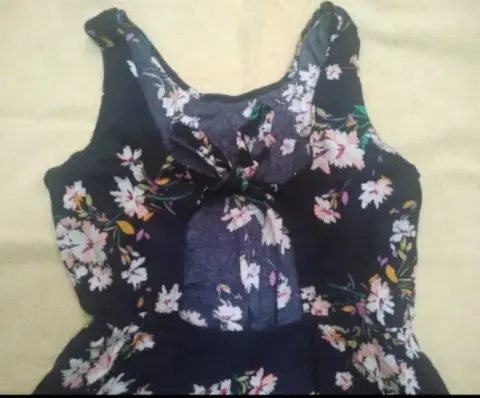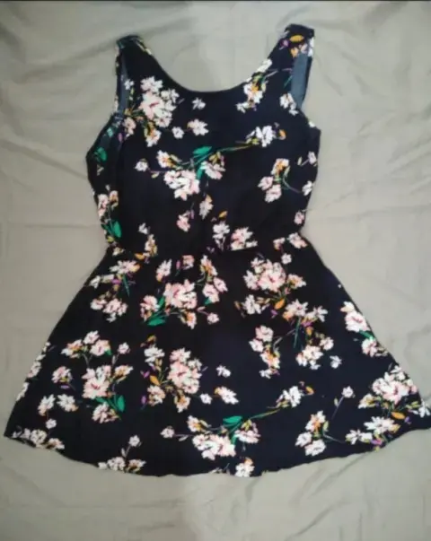 Vestido floreado con espalda descubierta. Marca 18 forever, es talla 7. En muy buen estado, se amarra de la espalda