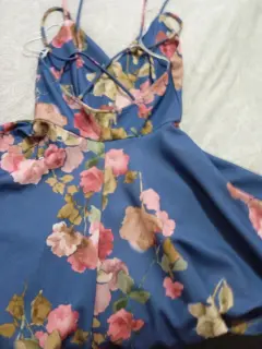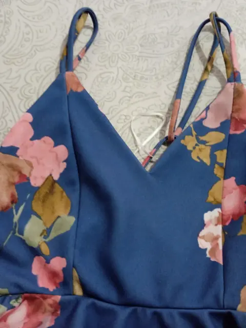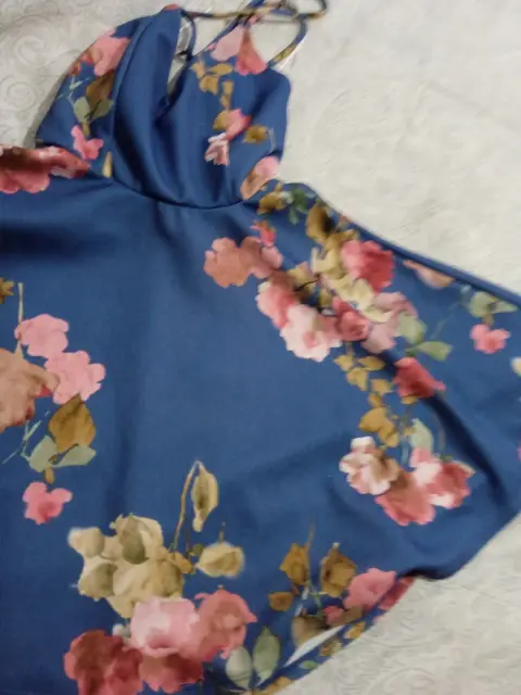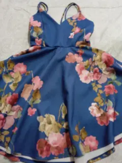 Vestido floreado de tirantes. Talla extra chica, con escote en la espalda, falda circular, largo de la cintura a la pierna de 43 cm
