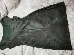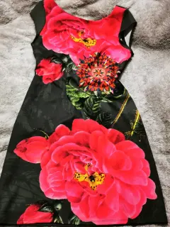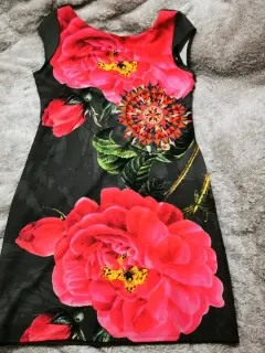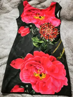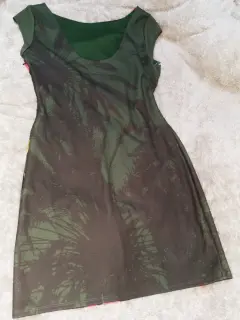Vestido marca desigual usado una ocasion color verde militar con flores rosas color fucsia en la parte de enfrente la tela estira un poco- EL PRECIO ES EL FINAL, POR FAVOR REVISEN BIEN LOS DETALLES DE LA PUBLICACIÓN 😊