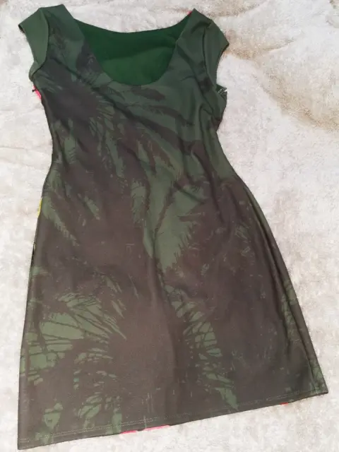 Vestido floreado Desigual. Vestido marca desigual usado una ocasion color verde militar con flores rosas color fucsia en la parte de enfrente la tela estira un poco- EL PRECIO ES EL FINAL, POR FAVOR REVISEN BIEN LOS DETALLES DE LA PUBLICACIÓN 😊