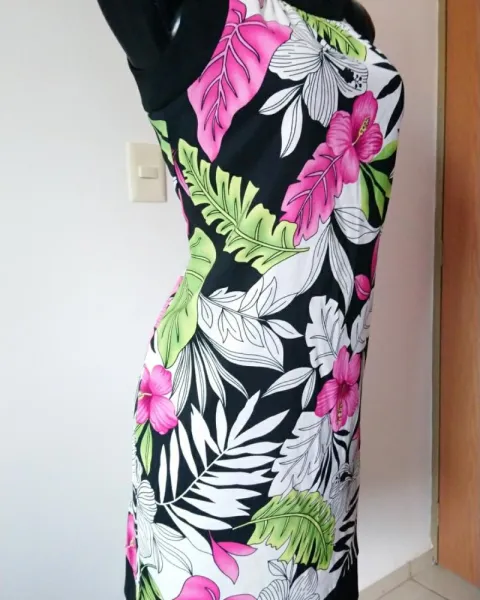 Vestido con hermosos colores, ziper en espalda y bolsas laterales, trae strech, marcado con talla 4 viene amplio. Axila a axila 45, cintura 42 y largo 90