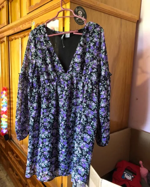 Vestido floreado en tonos morados. Hermoso vestido floreado súper ligero y nuevo