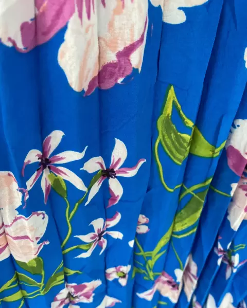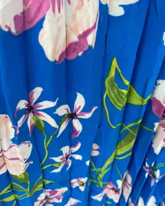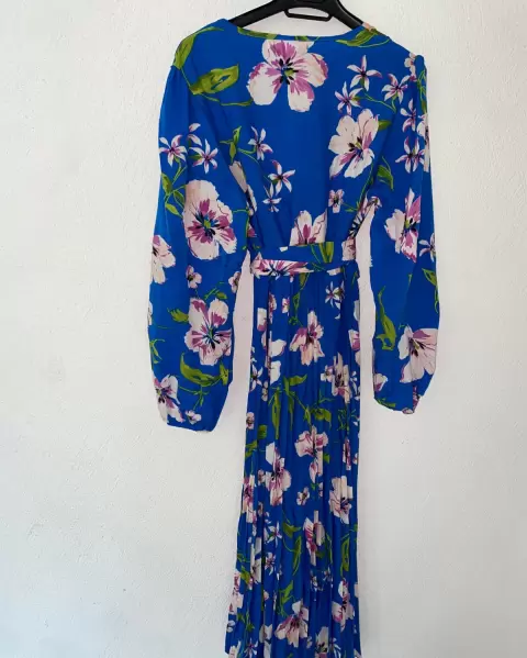 Vestido Floreado manga larga. Vestido floreado Manga larga Cuello VFalda plisada Tela poliéster Tallas (Azul y verde L)( rojo M)