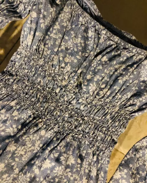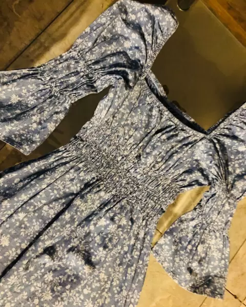 Vestido floreado manga 3/4 color azul con blanco tela tipo mezclilla queda padrisimo