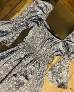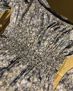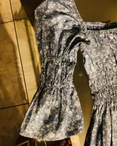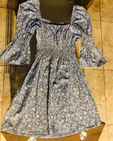 Vestido floreado manta 3/4. Vestido floreado manga 3/4 color azul con blanco tela tipo mezclilla queda padrisimo
