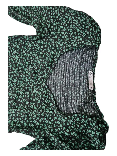 Vestido casual Flores verdes fondo negro! 🍀☘️La tela es un poco elastica, tiene cierre a un lado muy lindo! Marca: Zara Talla: L (mex 30)