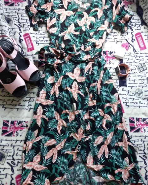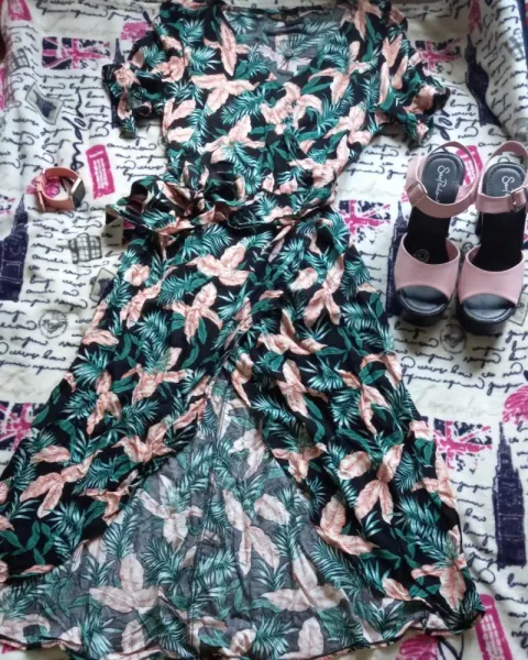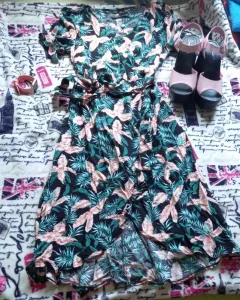 Vestido Floreal Juvenil. Super fresco, no transparenta nada,talla 5, EX CH, detalle en las mangas haciendo un poco efecto globo, escote V, abierta en medio para que se vea la pierna