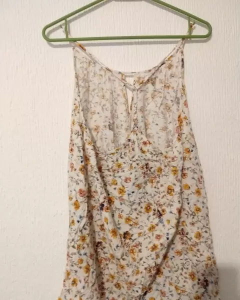 Vestido flores. Vestido corto con escote al frente y en un tirante en la espalda, está fresco y corte en u muy cómodo