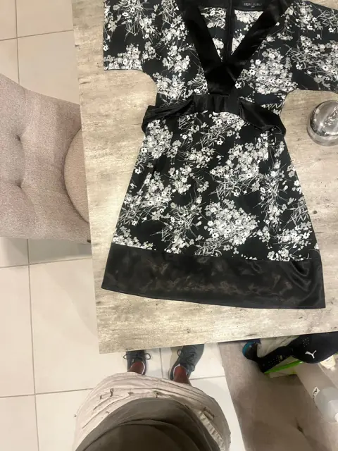 Vestido flores. Vestido negro con flores gris y blanco, solo se utilizó 1 vez está en perfecto estado sin ningún detalle.