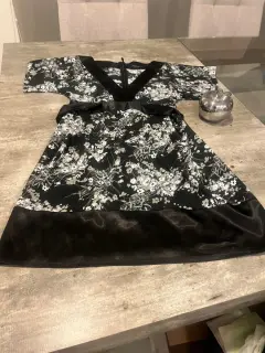 Vestido negro con flores gris y blanco, solo se utilizó 1 vez está en perfecto estado sin ningún detalle.