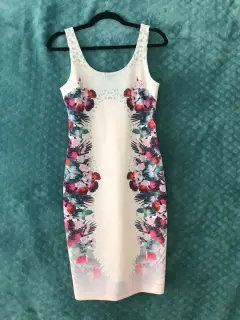Vestido flores. Vestido ajustado, sin mangas, con forro ajustable
