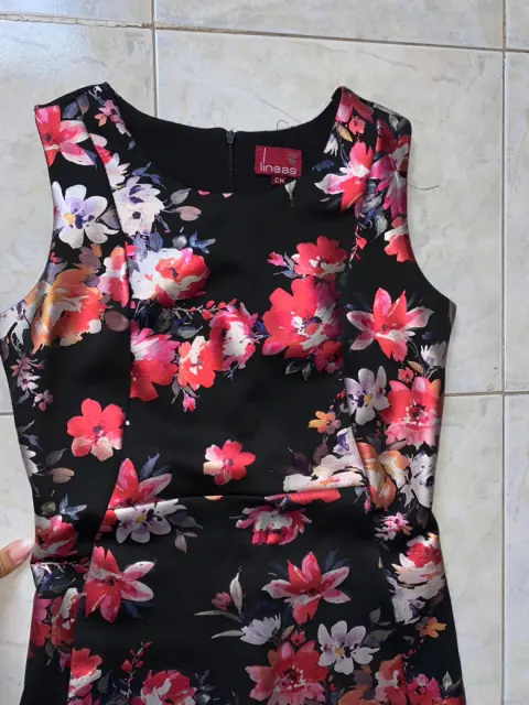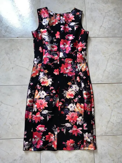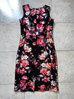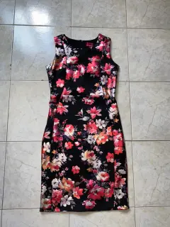 Bonito vestido de flores para fiesta, llega a la rodilla , es ajustado pero no apretado .