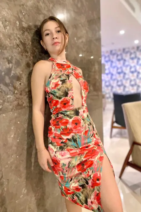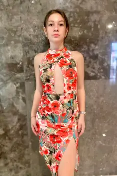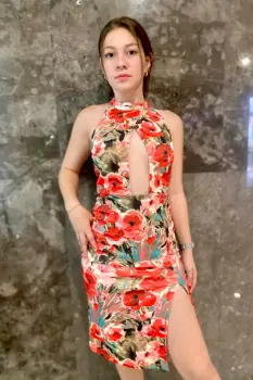 Vestido flores con abertura. Esta muy lindo, se ajusta muy bonito al cuerpo. Tiene abertura en el pecho y en la pierna.Disponible en talla Ch,M y G
