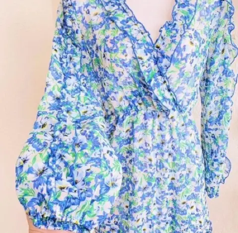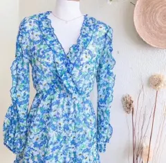 Vestido flores gasa Stradivarius 0032023. Vestido precioso, manga larga 🥰 con flores , escote en VNUEVO StradivariusTalla MPecho 49-55cm cintura 32-50cm largo 90 cm