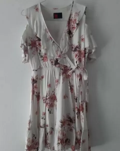 Vestido flores, mide de largo 88 cm, de cintura 36 cm, aunque estira y de axila a axila 47 cm.