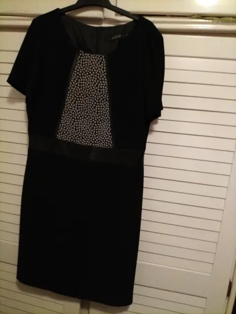 Vestido Foleys. Vestido negro, corte princesa, manga corta, cinturón imitación piel, con forro