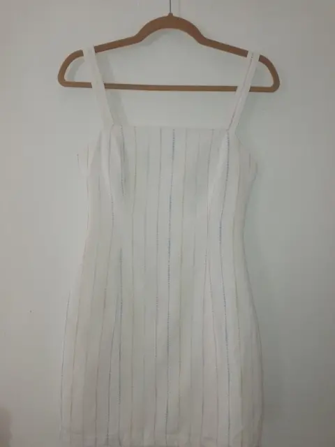 Vestido forever 21. Vestido blanco con bordados de líneas con coloresSin detalles en perfecto estadoMedidas axila - axila 41cm, Largo total 65cm, cintura 35cm70% algodón30% rayónFondo 80%poliester y 20%algodon**