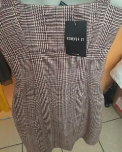 Vestido forever 21. Diseño a cuadros, cierre al frente en todo el vestido, con tirantes, se puede usar con una playera abajo.