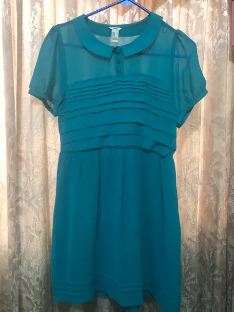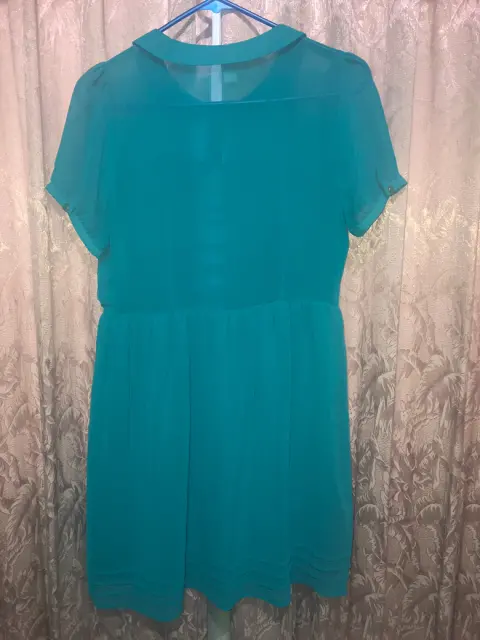 Vestido Forever 21 color turquesa, tela Chiffon, corto, talla M.