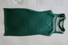 Vestido formal, entubado, color verde botella, sin mangas y con detalles en mesh color piel, largo por debajo de rodilla, tela gruesa, estrech, ajusta a tu silueta.