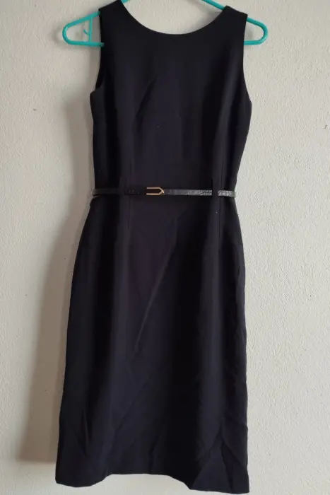 Vestido formal tipo sastre, color azul marino, talla 4, marca AMORI