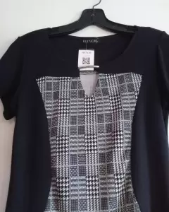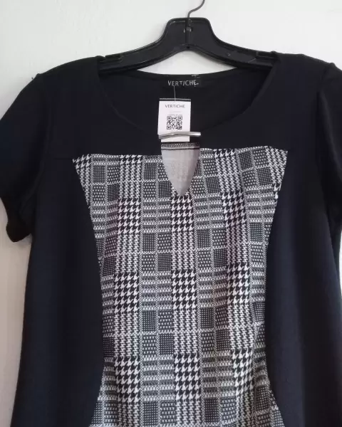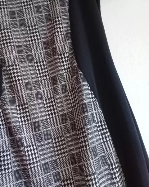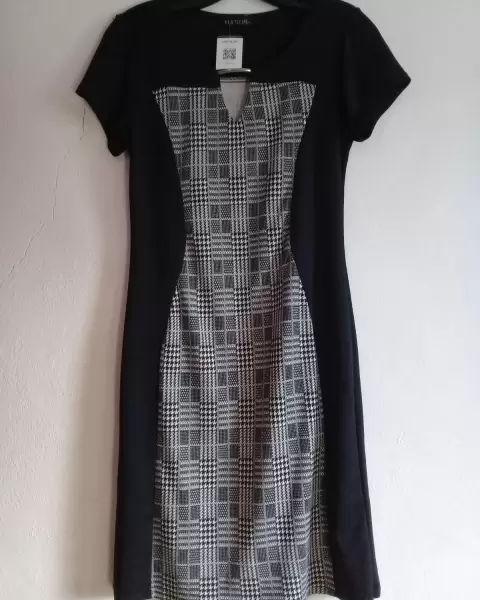 Hermoso vestido de cuadros, la tela se ajusta al cuerpo y las líneas negras del vestido dan una bonita forma.