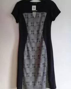 Vestido formal de cuadros. Hermoso vestido de cuadros, la tela se ajusta al cuerpo y las líneas negras del vestido dan una bonita forma.