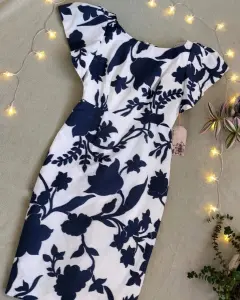 Vestido formal floreado. Hermosos vestido blanco con flores azulesLa tela es súper hermosa, el vestido tiene forro queda a la altura de la rodilla