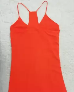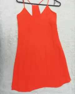 Hermoso vestido naranja fluorescente! Super fresco con tirantes y forro extra, por lo cual no se transparenta nada! Ideal para la playa o para un cocktel.