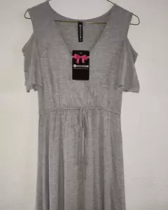 Vestido fresco y cómodo a la rodilla.Rayón y elastano.Ideal para usar con tenis.Hombros descubiertos.Stretch.