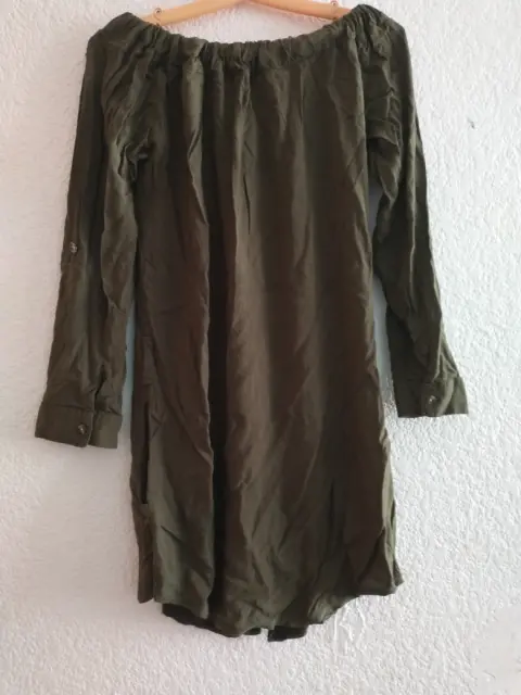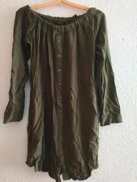 Vestido color verde militar 🍃, Talla S Con resorte en la parte de arriba y trae para poner un cinturónTrae bolsas