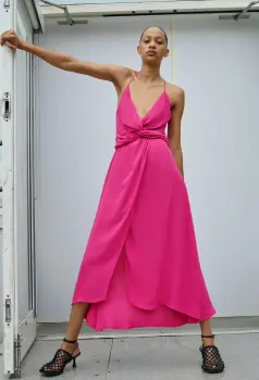 Hermoso vestido vaporoso y ligero de tirantes color fucsia hermoso talla XS de Zara