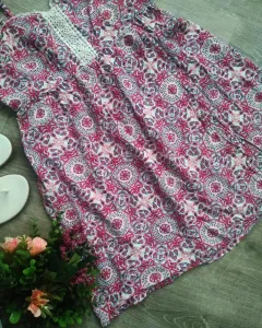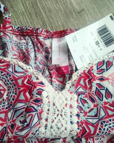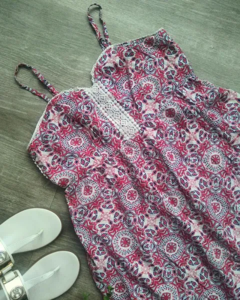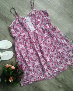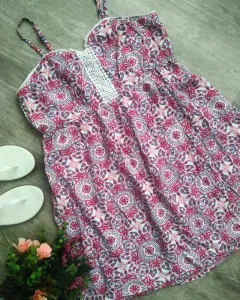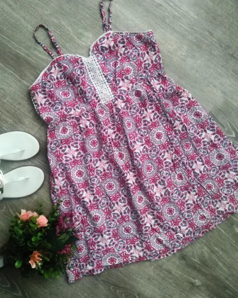Vestido geométrico de tirantes. La tela es algodón y suave al tacto, tiene un tejido en el pecho muy bonito y también lo tiene s los lados!