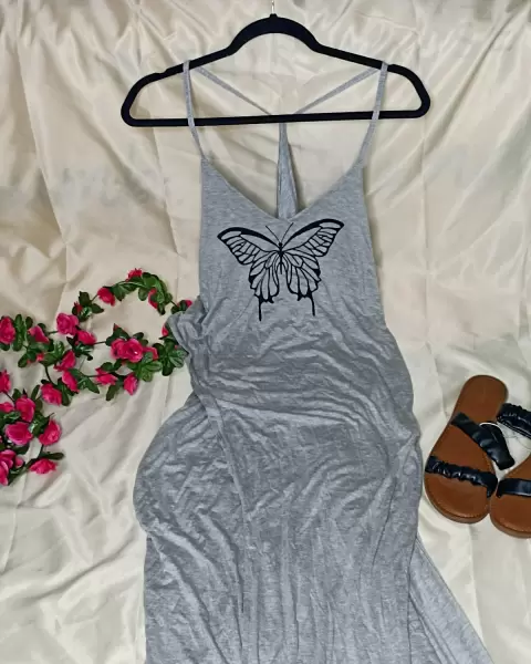 Vestido gris. Vestido casual de mujer con cuello en V sólido y tirantes con cordones, vestido irregular para fiesta, playa, vestido de vacacionesColor gris, talla S puede quedar también a una M