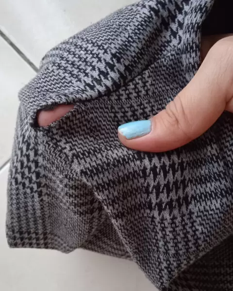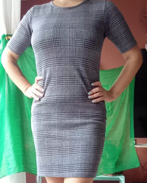 Vestido gris con estampado a cuadros, mangas arriba del codo, tela strech, se amolda súper padre al cuerpo y queda muy casual o formal (tiene descosido un poco en un hombro, ¡con unas puntadas queda como nuevo!)