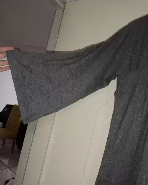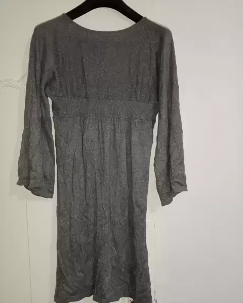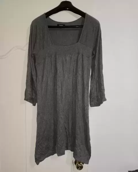 Vestido gris super padre algodón naylon y poliéster caida padrisima no se transparenta manga acompanada marca exprés talla L 36-38