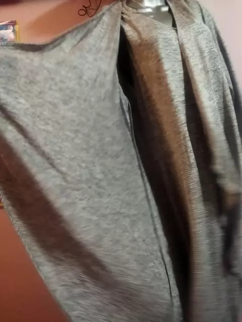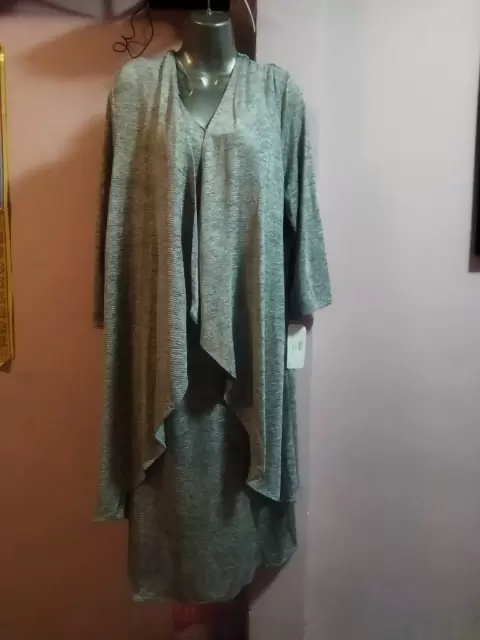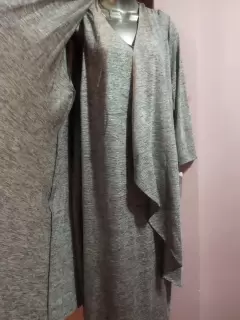 Hermoso y cómodo vestido gris brilloso con saco integrado. El vestido es sin manga pero el saquito es manga 3/4 está divino