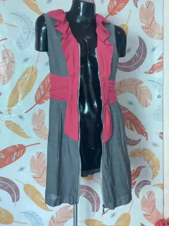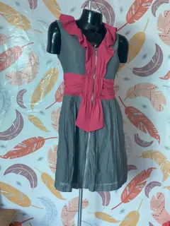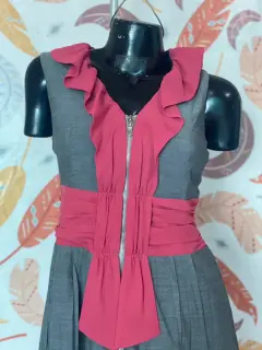 Vestido gris con solapa rosa. Clásico vestido con solapa rosa y cierre que lo abre completamente. Excelente estado.☑️ Acepto ofertas razonables en compras inmediatas.