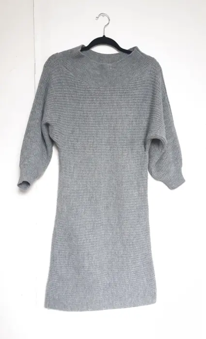Vestido gris de punto hombros escotados. Vestido de punto en color gris, es descubierto en los hombros y cuenta con cinturon. Es IDÉNTICO AL DE LA PRIMERA FOTO. Es NUEVO. Esta padrísimo.